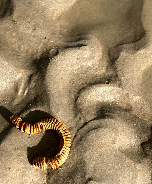 A small lightning whelk and channeled whelk form a heart.For everyone who loves shelling and beachcombing.