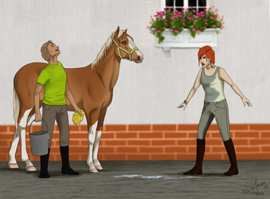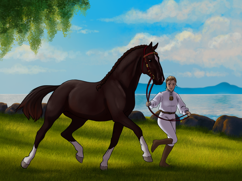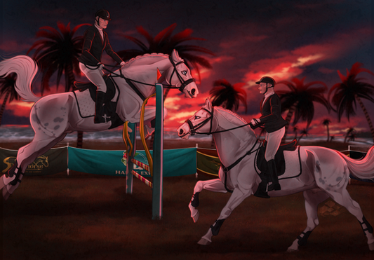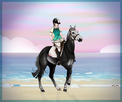She trotted out of the arena and was met by her stablehand. “Should I get him hosed down?” she asked. Rebecca just shook her head. “No… Lets just take his saddle off, I want to take him to the beach to walk him” she let the stablehand take the reins as she slid down from his back.