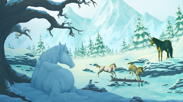 As the horses around him became fewer and fewer as the time passed by, Håkon felt conflicted. He wanted to wait for his human to return, but he also didn't want to be alone. With the support his his herd leader he found company with the other horses. His concern for his human and wether or not he would see her again still lingered. All he could do now was to seek shelter with his herd for the night.