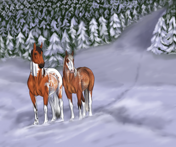 This is a collab with abosz007 , we both sketched our own horses, I did the lining and flat colouring, and Cursey did all the hard lifting with shading and background!