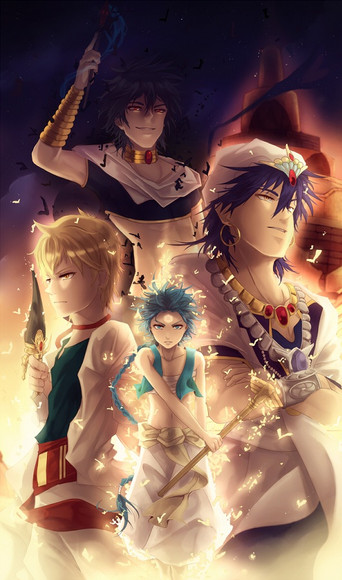 Their all characters made byΒ Shinobu Ohtaka in the series known as "Magi." There are 2 anime seasons with one OVA and its currently in its last arc in the manga.