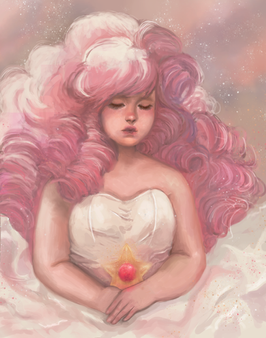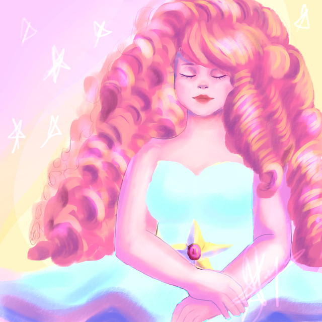 A mock piece of the painting from the series. I wanted to venture with mixes of pink and blue to see what I could find in between.I drew her gemstone too high, didn't I...?
