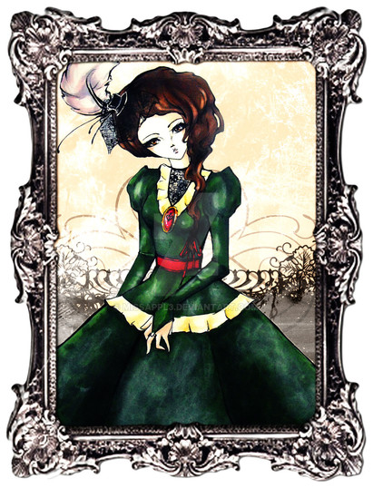 I love how the perspective is drawn so that you can still see the hallway in the back and the stairs going up! I also like how the colours are a bit dark (probably because Kairy is sad) but that there is still some light coming through the window (probably representing the happiness jack gives her?). Atleast that's what I see when I look at this picture.....sorry if I am wrong >//w//< I also like the detail of her dress and of the background!