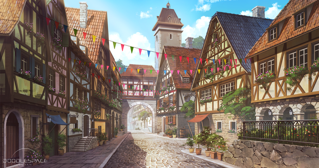 Sunset in the streets of Noelle.