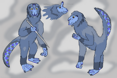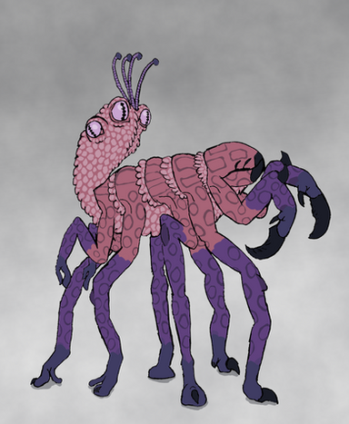 Regardless, only a few hundred adult Sstram survive in captivity, and even fewer of the larvae. Each adult has been numbered and is so essential to repopulating the species that they are very rarely taken offworld. Juveniles such as pictured above are somewhat more common but are still unusual, prestigious hosts. Adults are larger, with six arms and more developed tails.