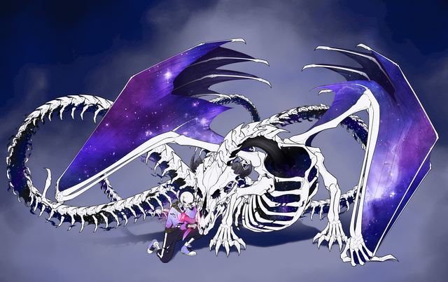 The dragon belong to me it's ExelThe skeleton is Star he's belong to a friend (Matoux)