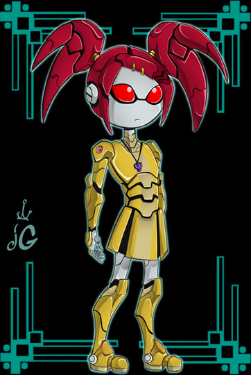 sari esta hecha de tecnologia decepticon supuestamente y como todo decepticon tiene ojos rojos sari tambien no es decir sari es un decepticon