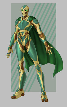 The most important piece of information is missing from this: he's not as edgy as he looks. ;^) (He also doesn't wear that all the time, I just wanted to show the chestplate...)Finally managed to make my first ever ref sheet. I did the face so many times and it still doesn't look right but everything else is ok. x___x