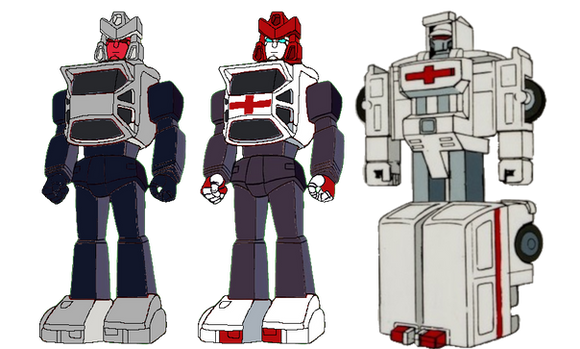 My character study on the Autobot "First Aid". Here you can see a front, back, and side view of the character.