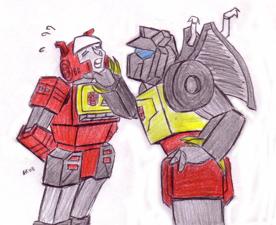 I was thinking about drawing one for him or making Swoop sit down but I thought it would be fun for First Aid to reach up and repair Swoop to show the height difference. ^^