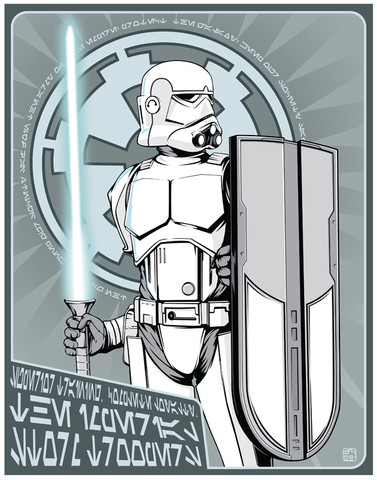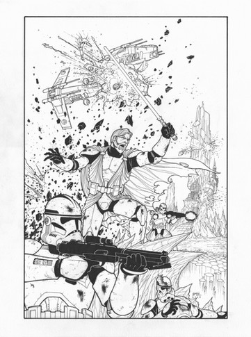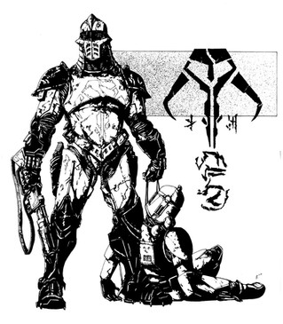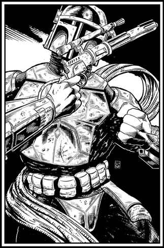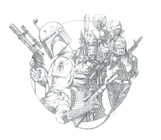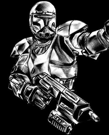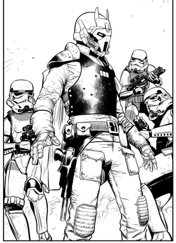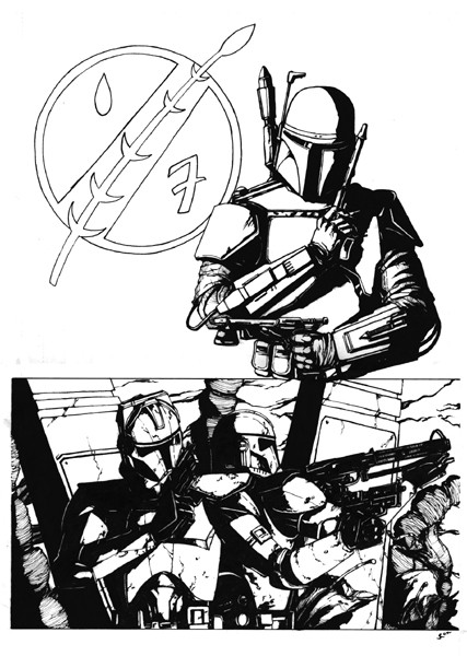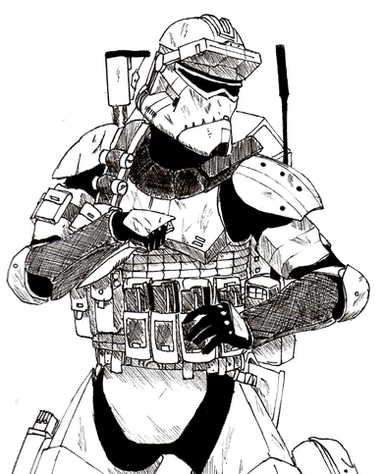 Scorch, Sev, and Boss from the Republic Commando video game.Pen and ink on blue line pro paper.