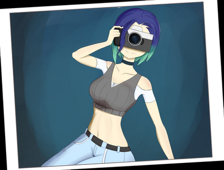 #backpack #bluehair #bluehairedgirl #camera #choker #multicoloredhair #perrin #pokemon #pokemonfanart #shorthair #thickeyebrows #shorthairgirl #cameraphotography #pokemongen9 #pokemonscarletandviolet #pokemon_sv