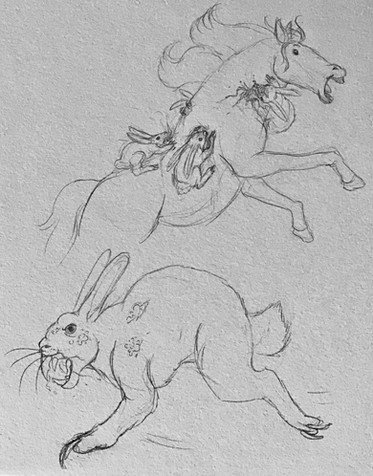 You saw it hopping along the side of the road ahead. You peered into his eyes as he made his fatal move onto the pavement. Sure you tried to hit the brakes, but he hopped right in front of your beat up old car and all you heard was the distinguished sound of bones crackling and intestines slurping. As your hair standed up on the back of your neck you started to feel sick. But as you continued down the road, you glanced in the rearview mirror. The poor defensless rabbit is split in half....and moving......STANDING UP!!!!!!! THE PLOT THICKENS!!!!!!!Ahahahahah, well this is a break from the ninja turtles! This is a pinup I am submitting to the guys over at Roadkill Zoo. It's a nifty little gorefest published by Novaris Entertainment. Check it out here: [link]