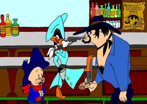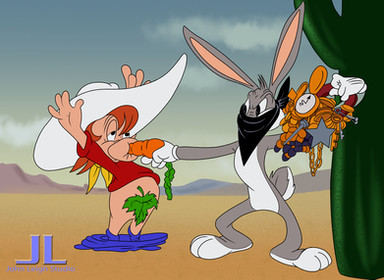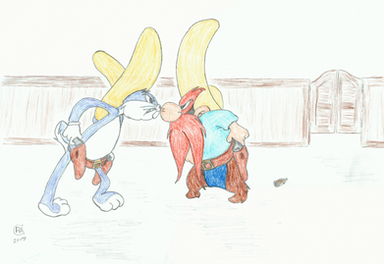 Here's a request that I finally finished! [link] wanted to see Red Hot Ryder being robbed by Bugs Bunny from Bob Clampett's "Buckaroo Bugs".Here you go rhr71, hopes you like!