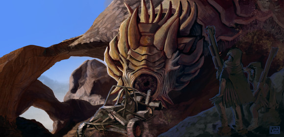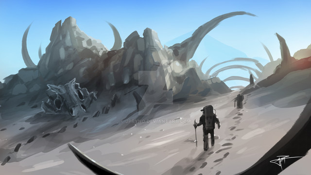 A local settler takes shelter under the remnants of an ancient beast.Related content