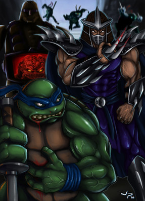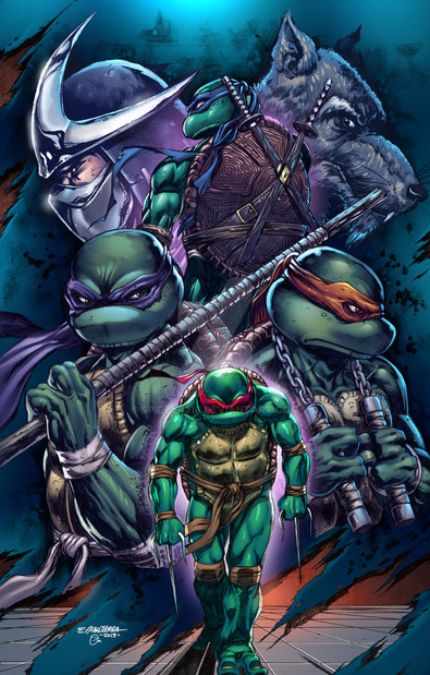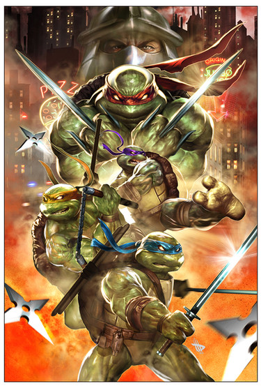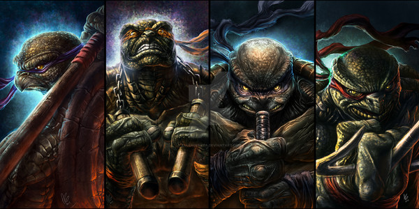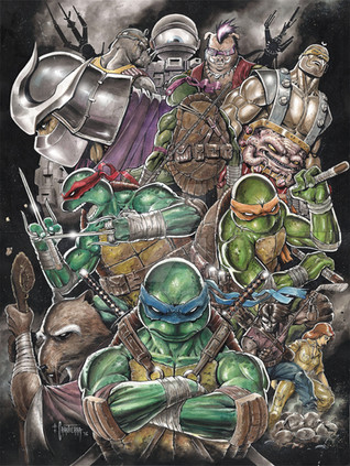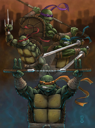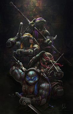A commission piece featuring the Teenage Mutant Ninja Turtles. Painted in Photoshop with a Cintiq 22HD.