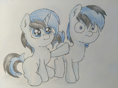 My part of an arttrade with BouncyBerry showing her two OCs Bouncy and Shirty.Bouncy, always happy, gets protected by her sister Shirty wich is somewhat of a opposite to Bouncy there.