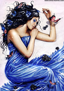 It seems calm and humble yet cold and icy, the wasps penetrating her serenity.. very beautiful (: