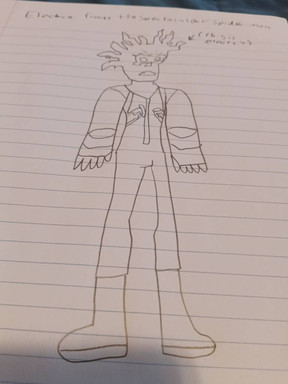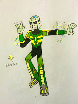 Holy crap was this guy hard to design, mainly his "mask" and chest "lightning". I eventually came up with what you see here.So, Max Dillon's mom died to cancer when he was about 5 and his sister, Francine Dillon(named after their grandma), was 3. His dad became depressed, and started drinking, turning him abusive and angry. Later when Max was 16 he grabbed his little sister and ran off.