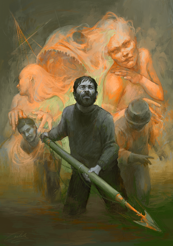 At first, I thought this painting was a depiction of Gollum, Tolkien's character.