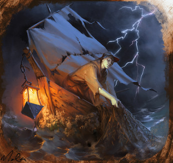 This is a beautifully dark piece! I love the blues and greens in the wave; I think they bring out the lighter tones in the clouds very nicely!