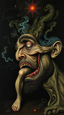 Wow, this remind me a lot one of the Chagal's painting, for the sheeps and the man with a big eye. I think your piece is like a continuation of that (yeah, I'm weird, let me be)
