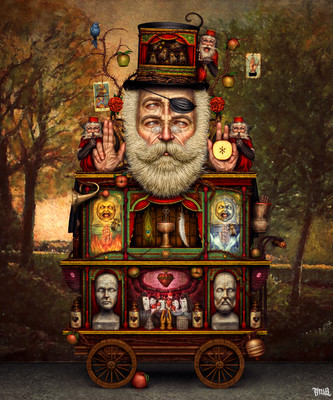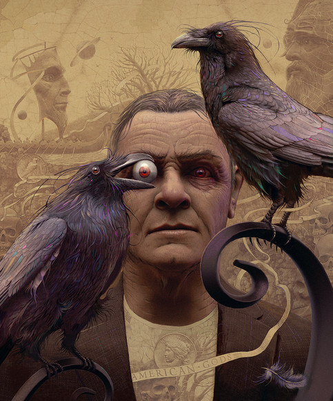 #birds #christensen #jeff #lion #owl #raven #surreal