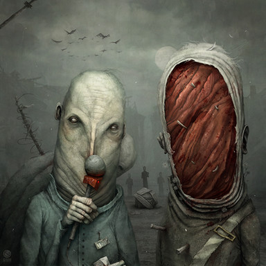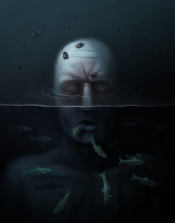I'm great horror/macabre admirer - in art of course (I hate violence and horror in real life). So it's the more pleasant for me to watch your paintings. I feel very deeply every such vision because I'm very sensitive person. I notice every tiny detail like for example magnifying factor of your water (branch seems to be thicker in this dirty water than above it). So your visions are realistic and on the other site so fantastical and unreal. I'm sorry I have to less power for creating my own works myself ech . Maybe in some day...