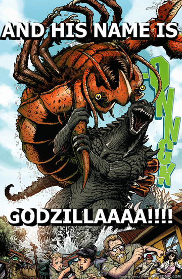 I always thought that'd be cool if they actually did that. The original poster for "Godzilla vs. The Thing" even looked a little like he'd be fighting "THE THING". That would be cool!