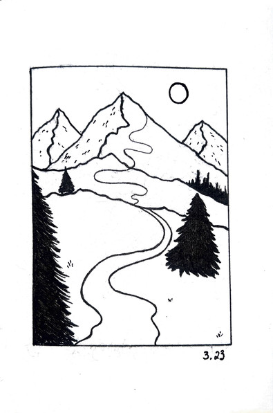 #illustration #landscape #landscapedrawing #lineart #micronpens #pendrawing #practice #simpledrawing #cabininthewoods #cabinbythelake