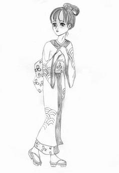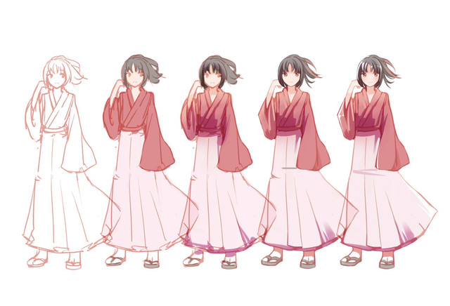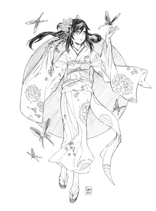 #anime #female #lineup #butterfly #conceptart #cute #girl #kimono #pigtails