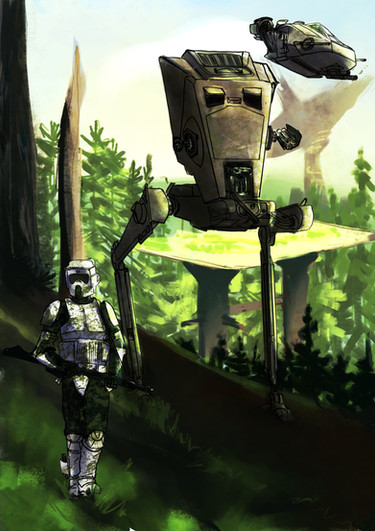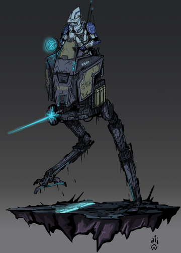 The All Terrain Reconnaissance Transport (AT-RT) is a bipedal assault walker maneuvered by a Republic clone trooper, being the forerunner of the Imperial AT-STs, gaining the 3.2 meter height the AT-RTs possessed as a great advantage. battlefield vision and light tactical versatility, its only drawback being its weakness to sniper attacks.