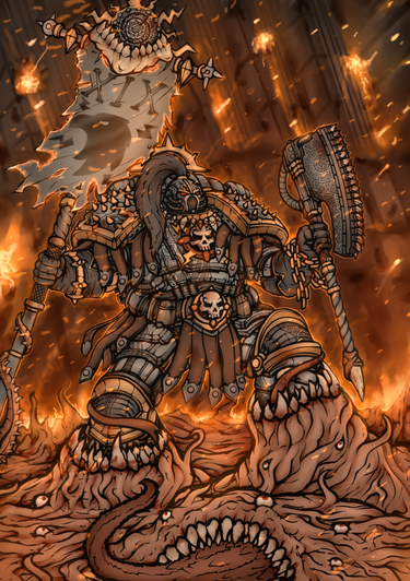 The Primarch “Angron” was the son of “Erda” the Perpetual and The Emperor, Angron's fury and bloodlust doomed the soul of the Primarch along with his broken legion of monsters who were once his children, acting on murderous instinct. and unconsciously “Angron” would be promoted to daemon prince, losing any type of possible redemption before his God-father the Emperor.