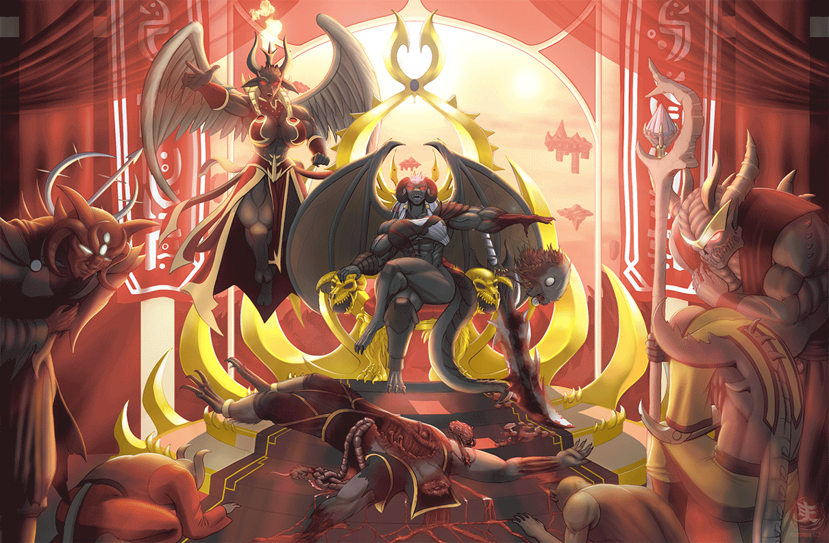 Blinded by the impact of his conflicting emotions and the deception of his brother "Horus", that cruel truth affected "Sanquinius" so quickly that he neglected to defend himself while delivering each thrust against the smiling demon who enjoyed the suffering. emotional of him; In an oversight, the Great Demon "Ka'Bandha" took the whip from him and held the Angel's legs in a spiral, who, losing his balance, heard the creak of his legs breaking while he was at the mercy of the great demon. 😈