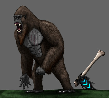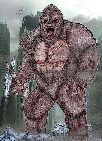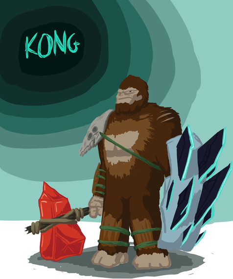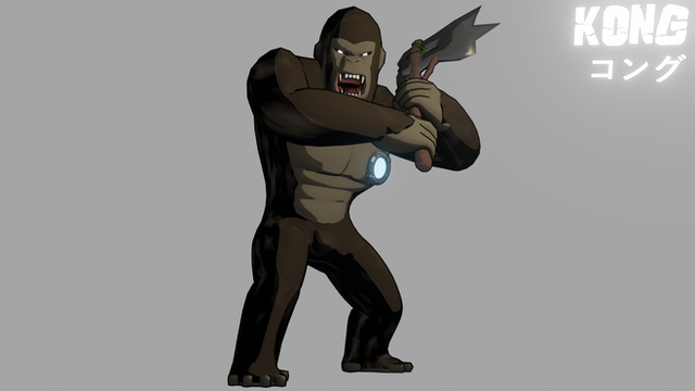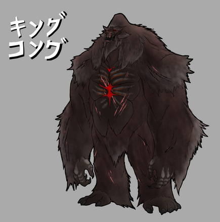 Kong for the adaptation of the Monsterverse is a kaiju for that reason its design resembles a giant bipedal gorilla but its species is classified as a "Gigantopithecus Gigantus" or according to its registry as "Titanus Kong" its personality is very sociable and overprotective with the Humans who respect him on their island, being the last of his species is a lonely male and very territorial against any foreign threat.