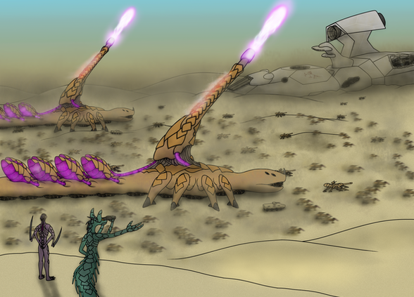 The "Scorpions" have a strong exoskeleton that makes them invulnerable to rifle blasts, but their disadvantage is their own weight, for this reason they are slow and not very agile when responding with a plasma shot, (A plasma shot can reach 100 miles per hour.) As additional data, the "Scorpions" can measure 13 meters long by 6 meters high.🦂