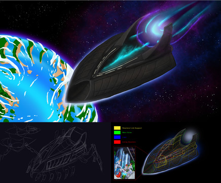 As the main quality of the "Transport Bug" we have the resistant shell or exoskeleton capable of withstanding strong impacts while moving in the vacuum of space, its head has a folding armor that protects it from the hostile environment and only opens when it descends to its destination. to collect or evacuate arachnid nests and then rise by means of its retractable wings until leaving the planet's atmosphere. (During space travel its wings are stowed while powered by internal combustion and only reopen in the event of an interstellar battle.) ☄