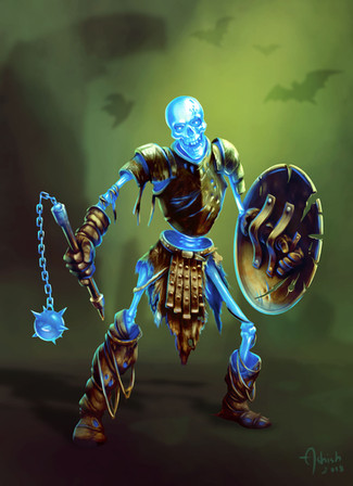 Covered with heavy armor, they praise themselves as the best warriors in "Purgatory" by raising their giant ax, a lethal thrust from the icy cold can inflict great damage like the taunts of the "Undead Lords", for their rudeness it is recommended to keep their distances dodging his attacks and counterattacking by blocking his blows can end up disarming his cocky bones. π