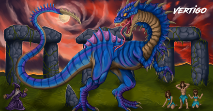 Opinion: "Vertigo" besides being a sorceress and goddess of madness is described as a Dino-beast with mystical abilities that can petrify any rebellion, its appearance is of a blue cobra combined with a theropod dinosaur body (classifying its species as a "Cobrasaur Etraasia"), his attitude is destructive and chaotic like the lunar influence that awakened the rest of the primitive gods from their lethargy with the impact of a meteorite that transformed the "Earth" into the world of "Urth"; With the awakening of "Vertigo" primitive humanity is under the condemnation of mental and dimensional torture.