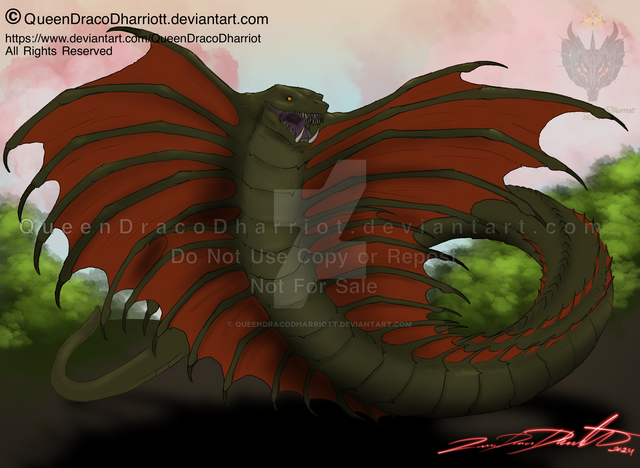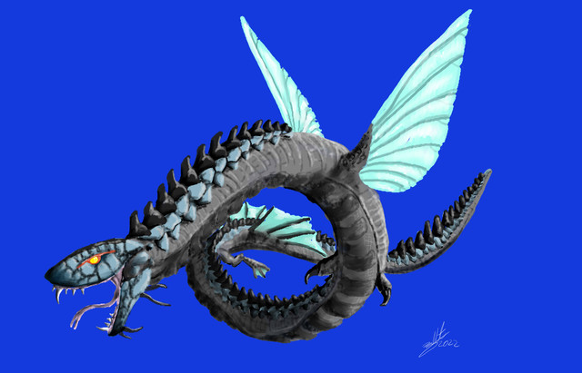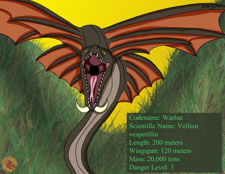 Each Warbat is a skilled flier and swift fighter, wrapping its serpentine body around its prey to immobilize and then suffocate it with its wing webs; The dimensions of a Warbat is 130 meters long.
