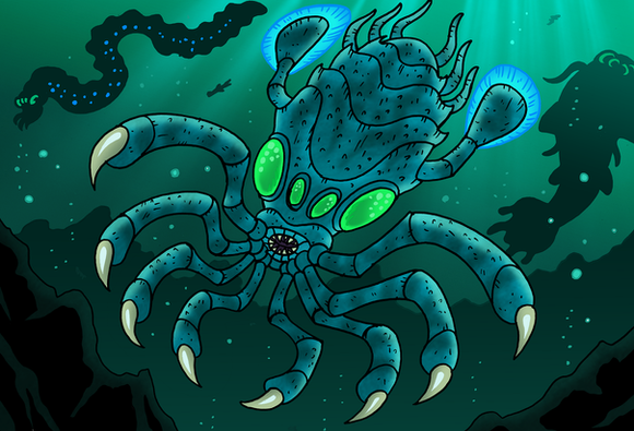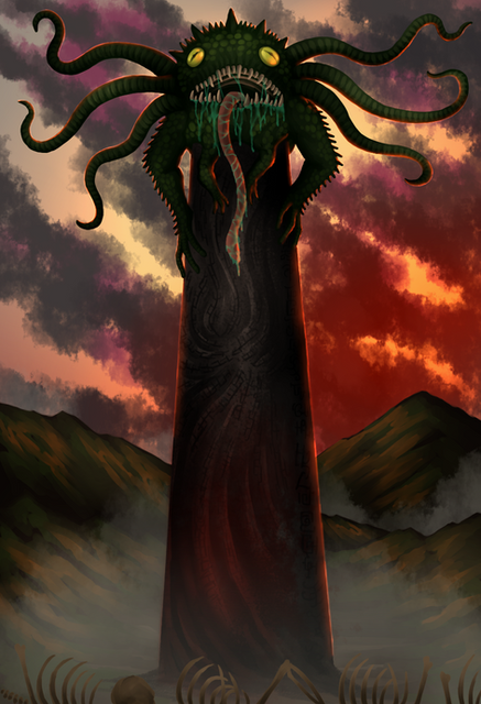 “A long, sinuous tentacle had crawled out of the water; it was pale green, phosphorescent, and wet. (...) Another twenty tentacles appeared, spreading out like waves. The dark water boiled and the stench was appalling.” 🐙