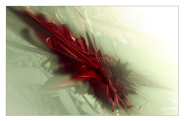 The subtle backdrop texture works well in this, especially since the render has a deep, scratched out feeling.