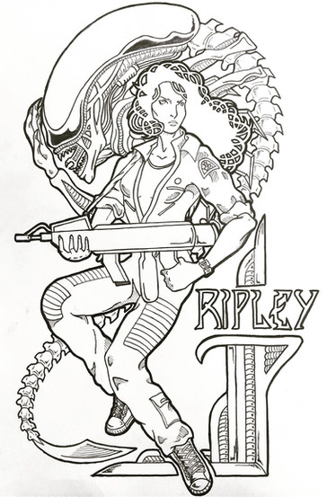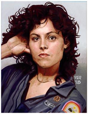 A portrait of Sigourney Weaver as my 70s Scifi Queen Ellen Ripley.Colored with Copic