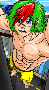 Ryuji from Persona 5 hehe. I recently made an NSFW sketch of him giant and posted it on Tumblr, people really seemed to like it. So I went and finished it hehe.It's just him giant and leaning on your house as he came to visit hehe.