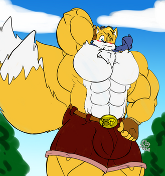 This is the result of a friend and I talking about if ATLUS was run by me and they remade Sonic. Of course they'd have a surprise at every turn such as 'Gigantic Muscular Tails'. Imagine Sonic asking him to use the Tornado.I also made another picture of him as a final boss, we call him 'Overlord Tails'. Here's a [link]