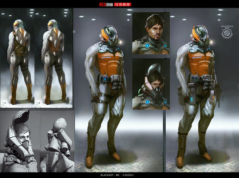 Judging by his name, maybe in the actual game he could have a mini-squad of various types of drones to assist him? Like, a trapper drone to set taser mines or something, an attack drone with plasma and gatling guns, and so on.