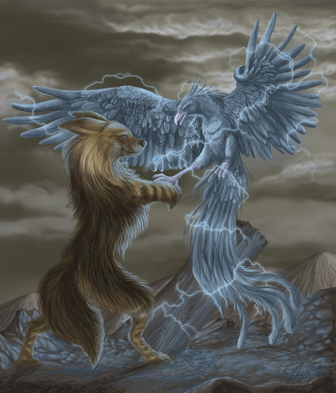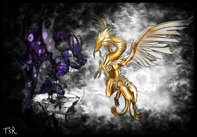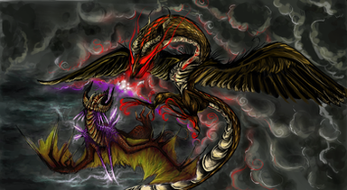 My Death Collosus (Harvauck) meets up with a new and formidable foe (Phryaah). Who would emerge victorious in this encounter of epic proportions. ^^Here's my original Harvauck (Rift Death Colossus) artwork > [link]