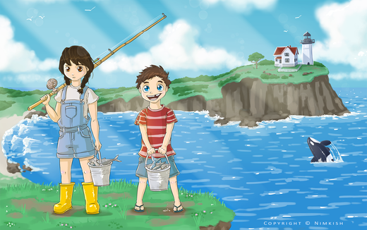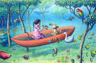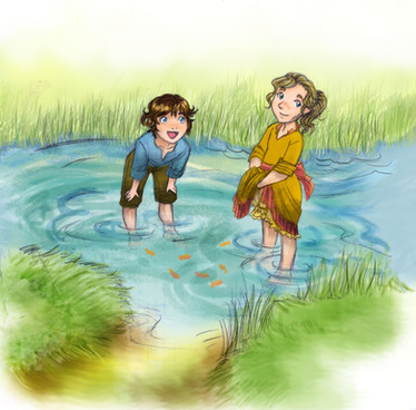 Yoli and Rudy have the right idea! Sploshing along the shoreline on a beautiful spring dayΒ Drawn with pigma micron pens, and painted with watercolorsΒ