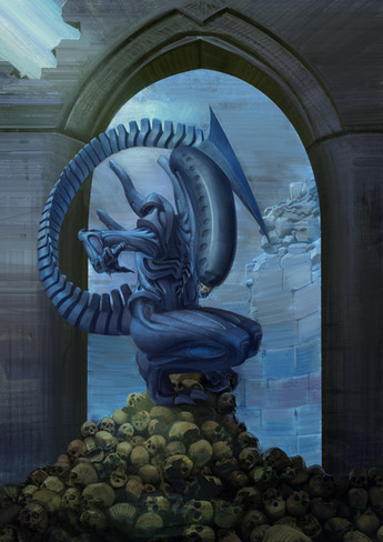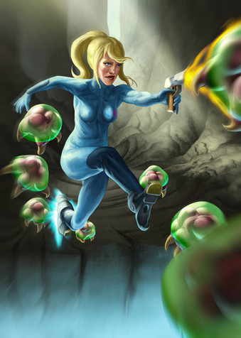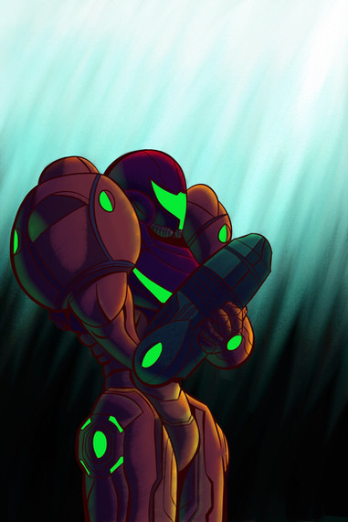 Nice piece, I love the glowing portion from the arm cannon, it creates a wonderful quiet menace. One criticism is that the whole pose looks a little awkwardly squashed...maybe if the cannon were the greater focus (I just love that part of the work )