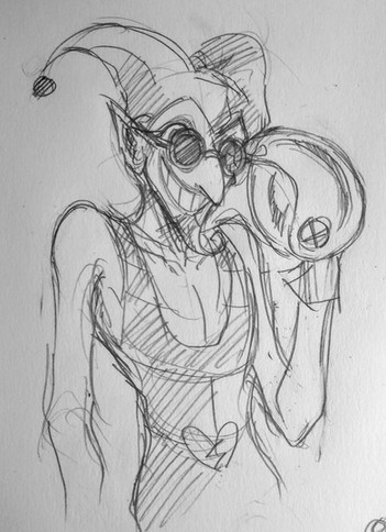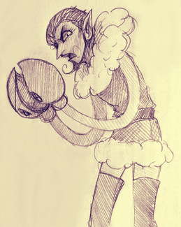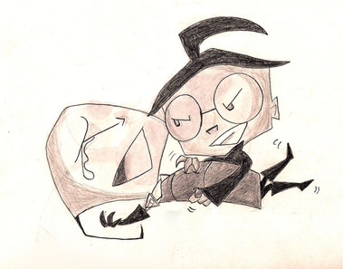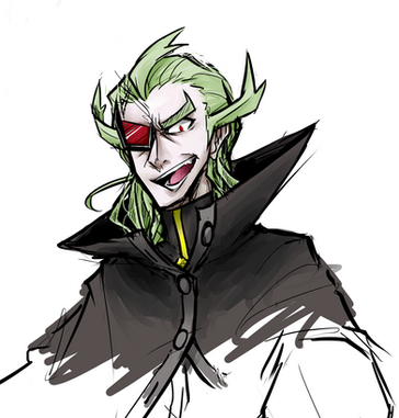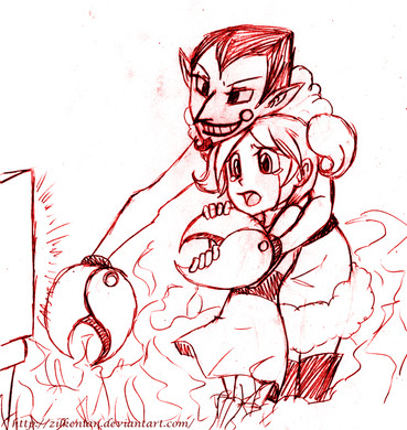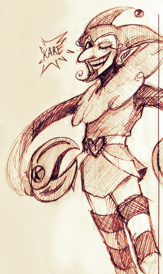 i might sketch a few more lines he makes. this one's just where he's trying to taunt the ppgz over the tv when mt. fuji's erupting.